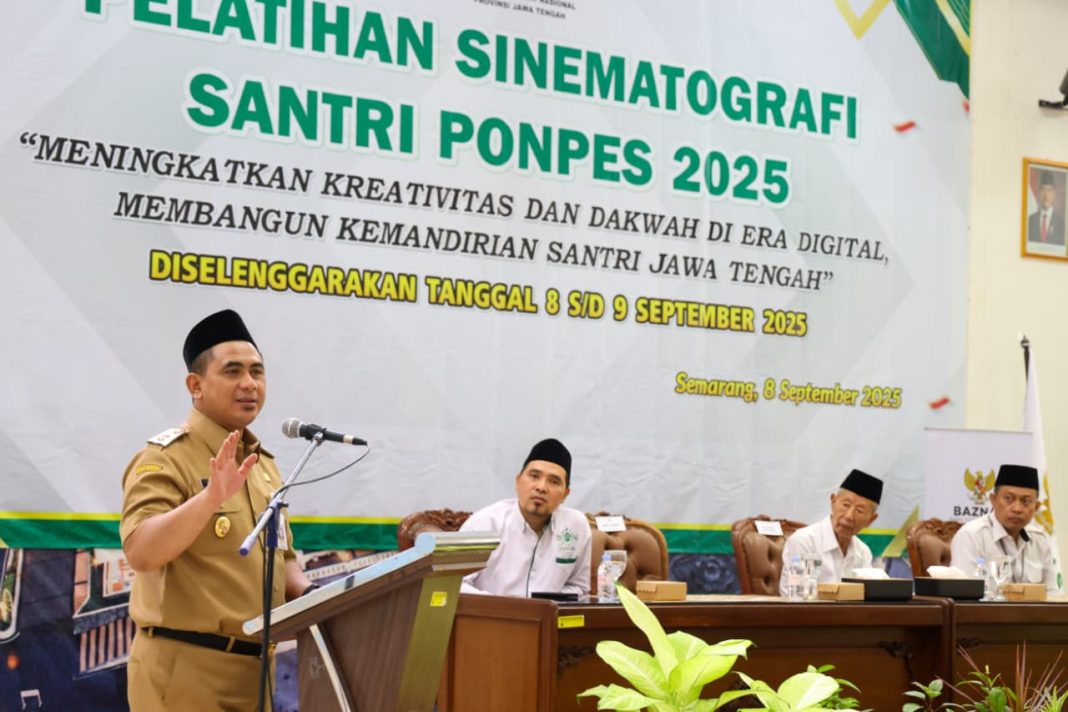 SEMARANG – Mewakili gubernur Jateng Ahmad Luthfi, Wakil Gubernur Jawa Tengah Taj Yasin mengapresiasi inisiasi pelatihan sinematografi untuk santri yang digelar Badan Amil Zakat Nasional (Baznas) Jawa Tengah. Menurutnya, metode dakwah di era digital harus memanfaatkan media visual agar pesan lebih mudah diterima masyarakat.