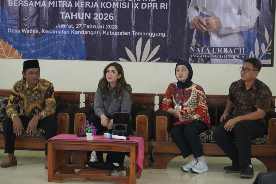 Temanggung – Anggota Komisi IX Dewan Perwakilan Rakyat Republik Indonesia, Nafa Indria Urbach, melaksanakan kegiatan sosialisasi Program Makan Bergizi Gratis (MBG). Sosialisasi ini dilakukan bersama mitra kerja Badan Gizi Nasional (BGN) di Balai Desa Wadas, Kecamatan Kandangan, Kabupaten Temanggung, pada Jumat (27/2).