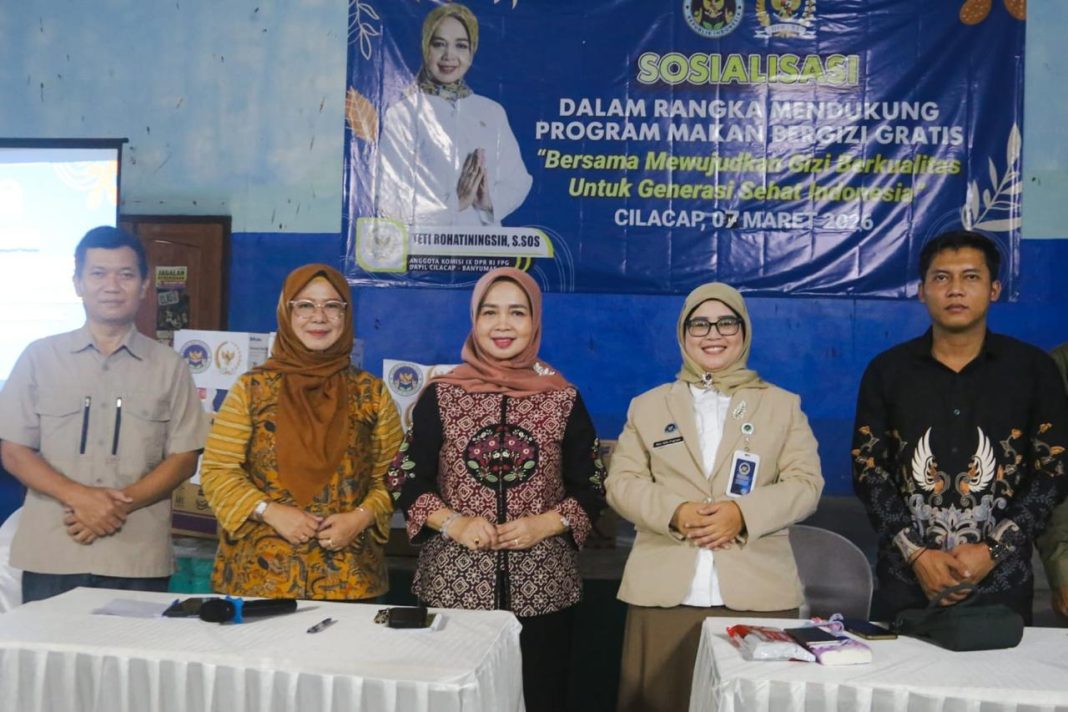 Cilacap – Anggota Komisi IX DPR RI, Teti Rohatiningsih, menekankan pentingnya sinergi antara pemerintah pusat, pemerintah daerah, dan masyarakat dalam menyukseskan Program Makan Bergizi Gratis (MBG). Hal tersebut disampaikannya dalam kegiatan sosialisasi program MBG di GOR Garuda Wanareja, Kabupaten Cilacap, Jawa Tengah, Sabtu (7/3).