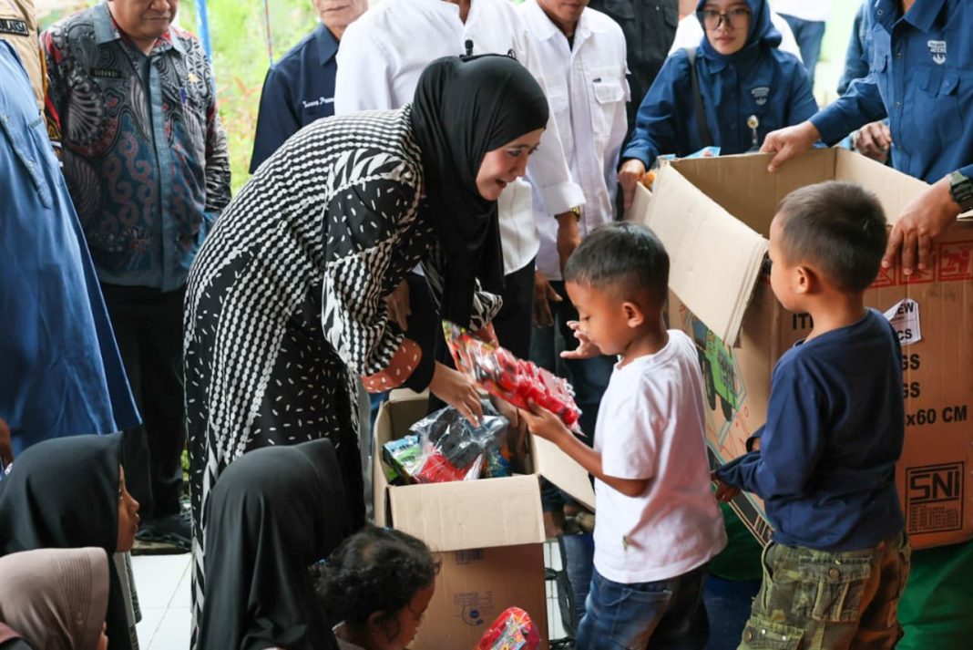 Brebes – Kedatangan Ketua TP PKK Provinsi Jawa Tengah, Hj Nawal Arah Yasin, M. S.I, membuat sumringah anak-anak pengungsi korban tanah gerak di Dusun Bojongsari, Desa Sridadi, Kecamatan Sirompag, Kabupaten Brebes.